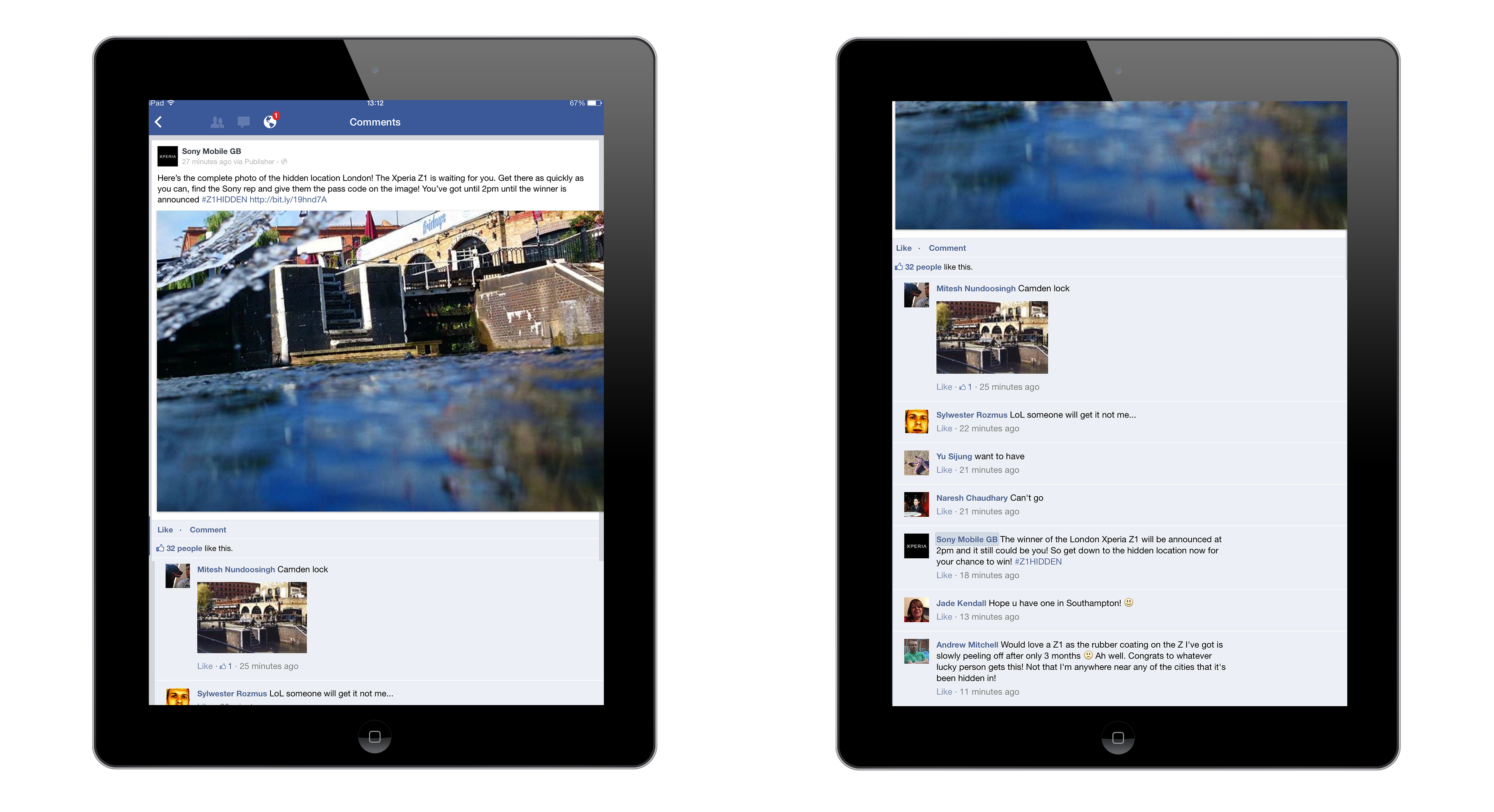 To demonstrate that the new Xperia Z1 features the world’s best camera in a waterproof smartphone, we hid five Xperia Z1 in watery locations in five UK cities. Photo clues taken on the smartphones were released on socials. The first person to find the phone in each city took it home.